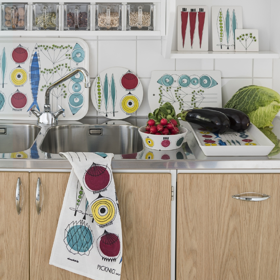 Marianne Westman (1928 - 2017) var en av Sveriges ledande designers. Under 1950-talet designade hon bland annat mönstret Picknick. Almedahls började, det som visade sig vara, ett långt och nära samarbete med Marianne 2009 när mönstret Picknick lanserades på textilier.
