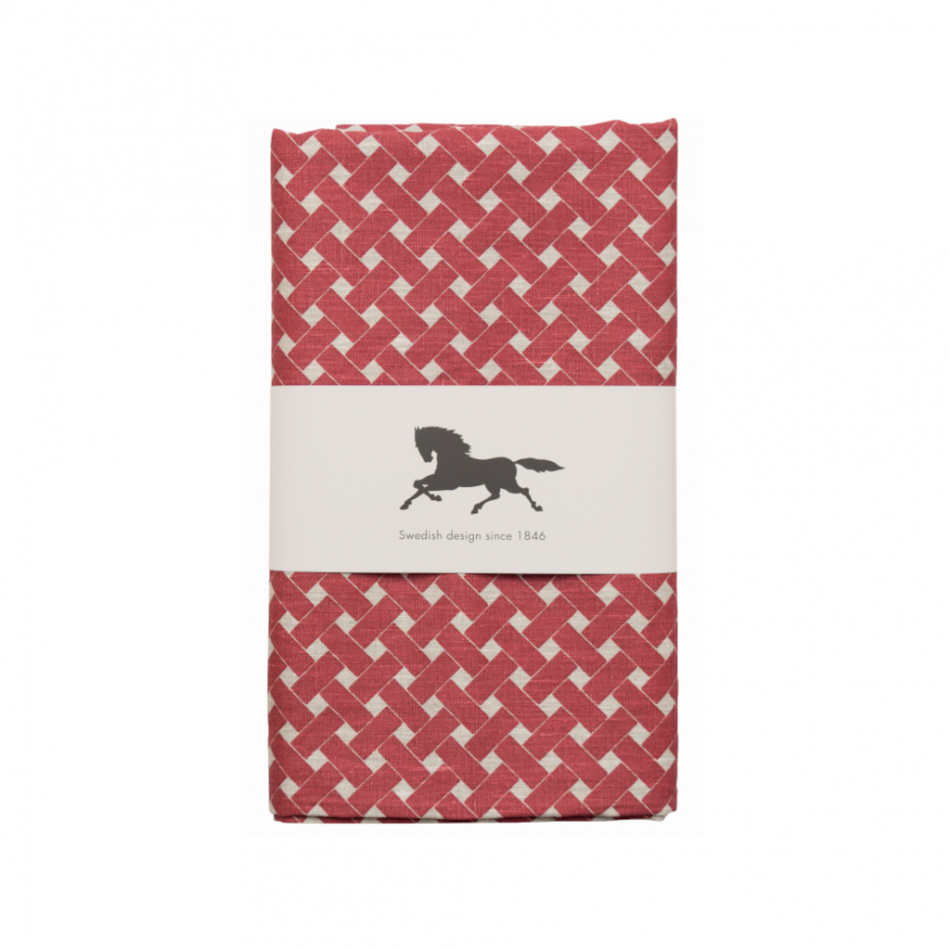 Korg är ett tidlöst grafiskt mönster inspirerat från flätningen av en spånkorg. Korg är ett diskret och småskaligt mönster fint att komplettera till vårs tids neutrala färgskala i hemmet. Mönstret är printat på oblekt linnetyg.