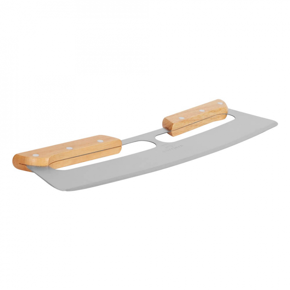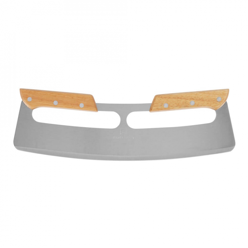 Det rostfria stålet är motståndskraftigt mot fläckar och korrosion, vilket innebär att pizzaskäraren behåller sin glans och skärprecision även efter många användningar. Handtaget av trä är behandlat för att vara hållbart och enkelt att torka av.