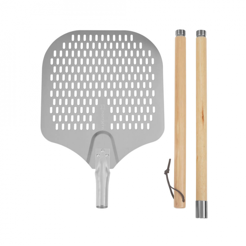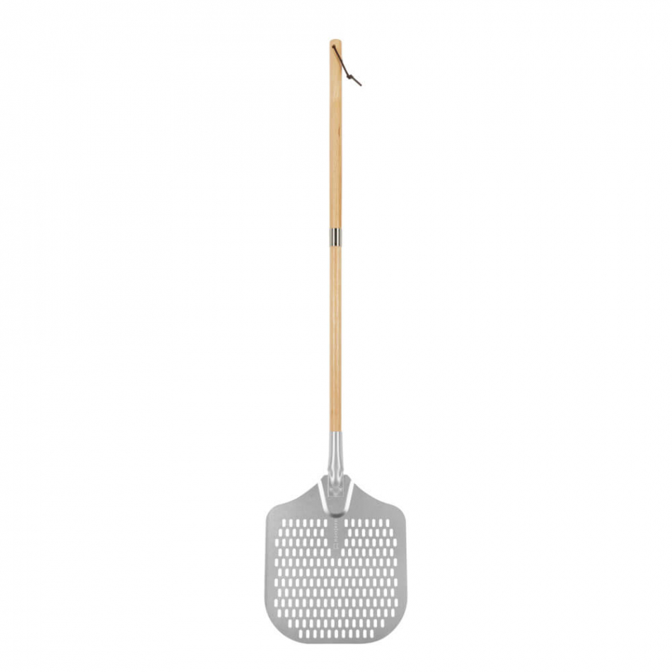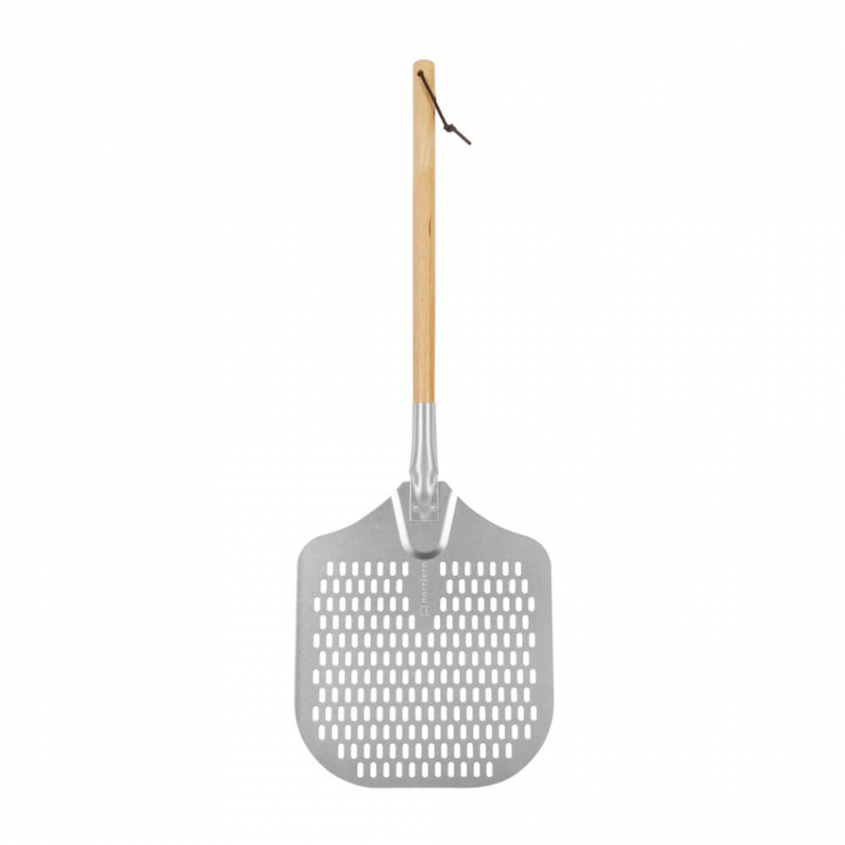Pizzaspaden är ett oumbärligt verktyg för att smidigt förflytta pizzan från bakbordet till ugnen. Dess perforerade yta hjälper till att förhindra att pizzadegen fastnar, vilket gör hela processen enklare och mer effektiv.