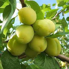 Plommonträd Reine Claude är ett stort gult plommon med saftig och söt smak. Självfertil.