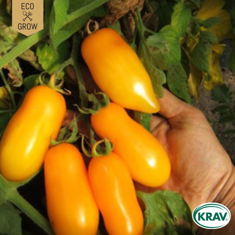 Är en lågväxande, läcker tomat med gula, avlånga, bananliknande frukter på ca 70 gram. Ger mängder av frukter med ett saftigt fruktkött med få kärnor. Mild smak som såväl passar för färskkonsumtion som till konservering och matlagning. Den buskiga plantan passar utmärkt för krukodling på balkong, altan eller i växthus. Skotten i bladvecken, ""tjuvarna"", tas bort.