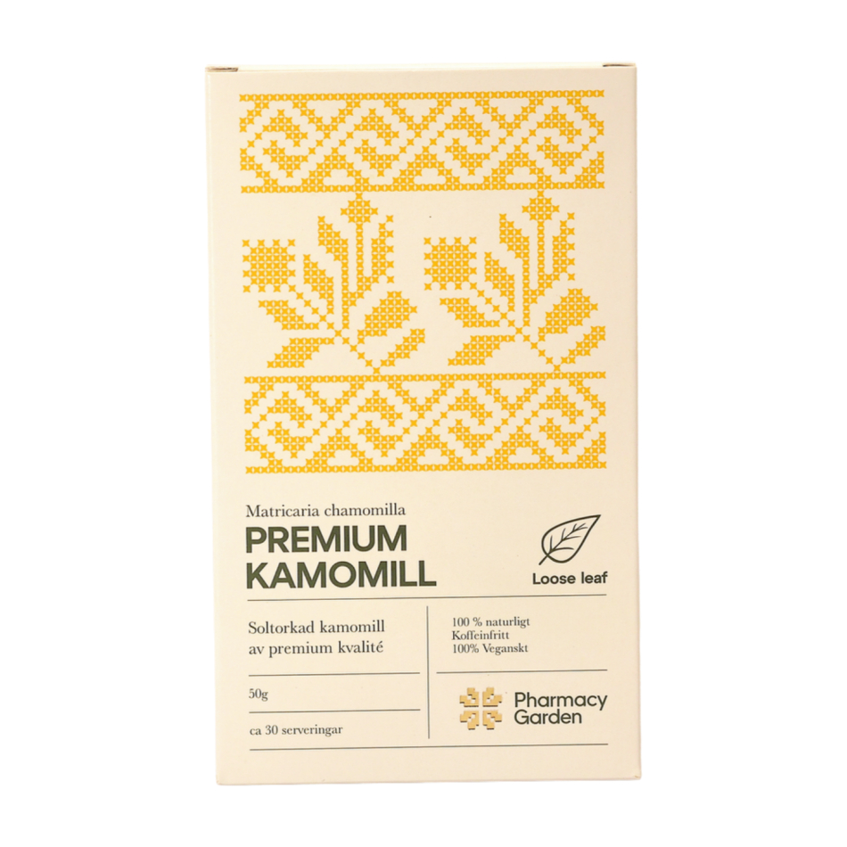 Premium Kamomill består av 100% Kamomill (Matricaria chamomilla) av oöverträffad kvalitet.