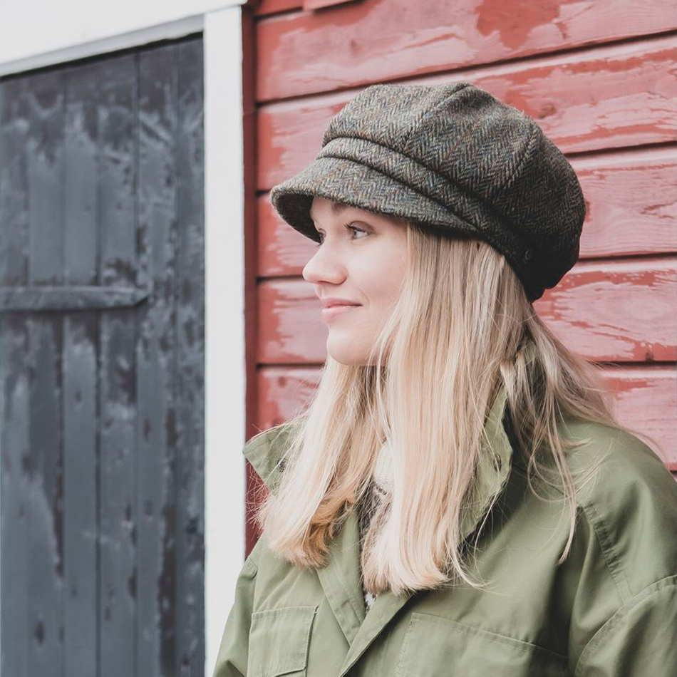 Damkeps i tyg från Harris Tweed i 100% ull.