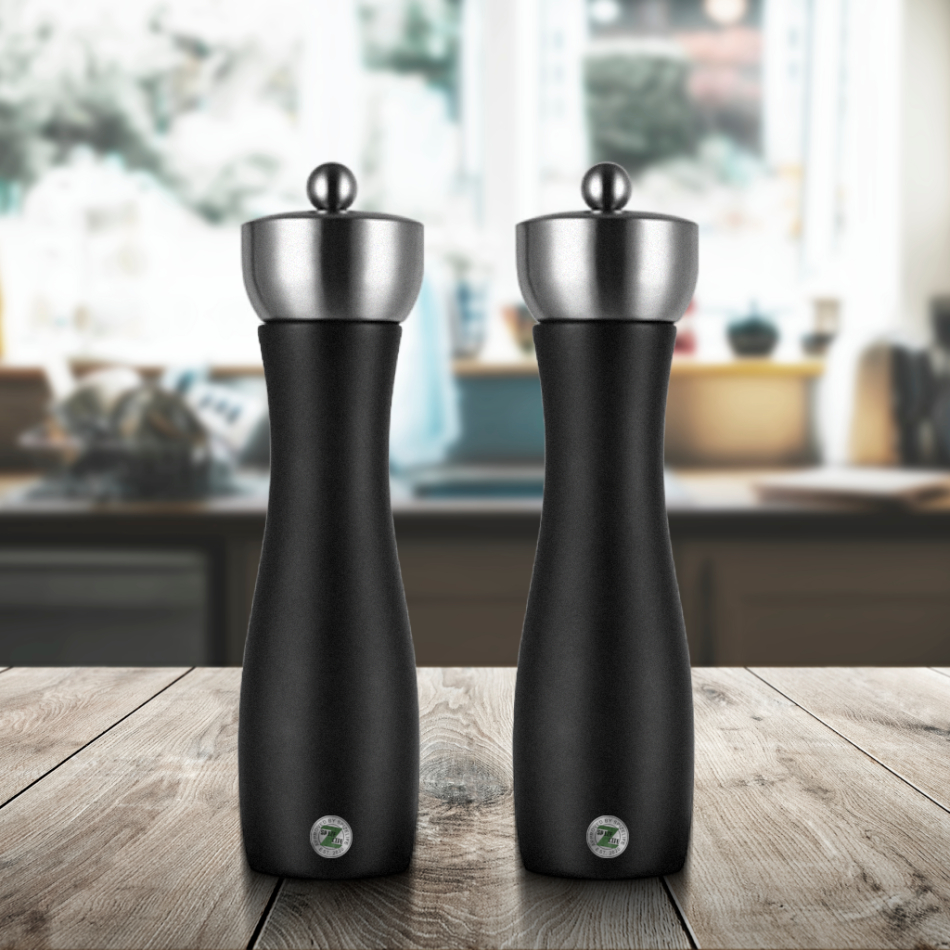 Ett exklusivt kvarnpaket fint förpackade i svart presentförpackning med vår logotype och svart silkespapper, med ett personligt meddelande (om så önskas). Stilrena, moderna salt och pepparkvarnar i mattsvart utförande. Fungerar även för andra kryddkorn.