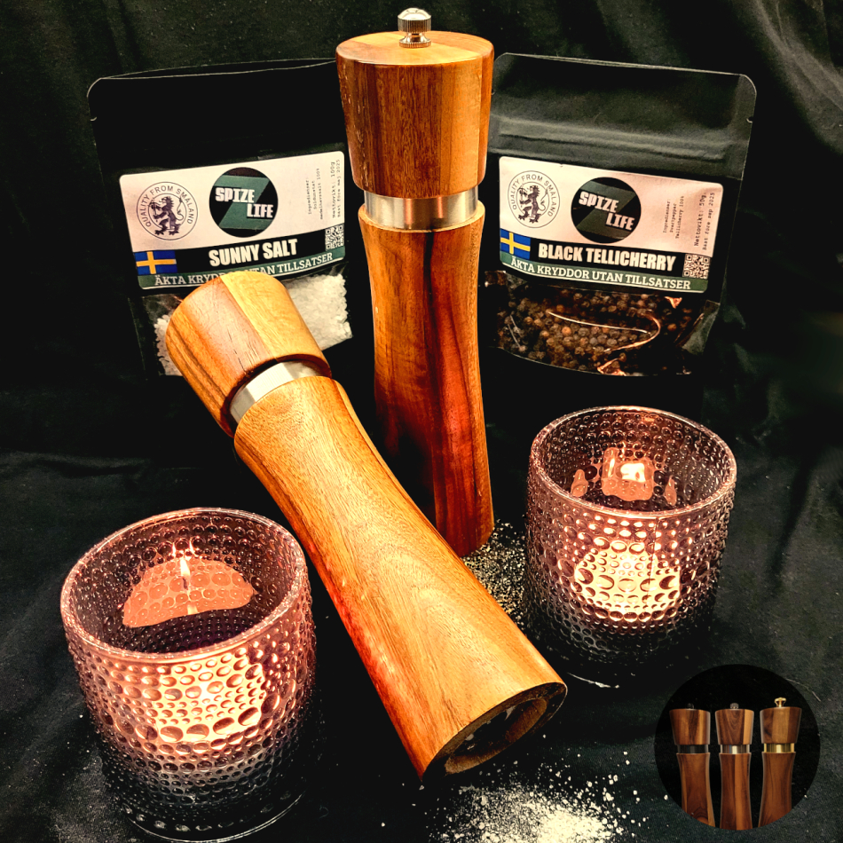 Inklusive havssalt 250g samt Tellicherry-peppar 80g.
