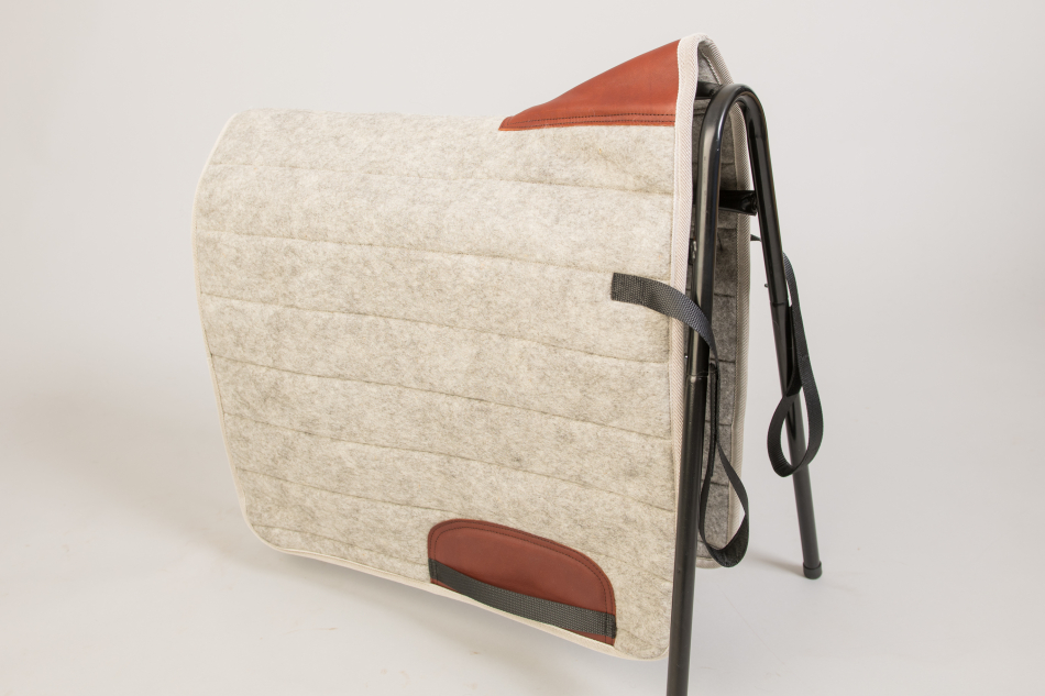 Schabraket är gjord av en nålfilt i 100% svensk ull med läderdetaljerna av svenskt läder.