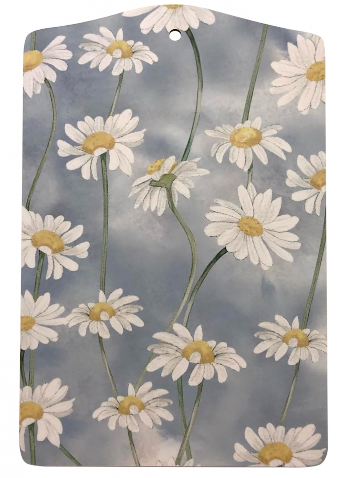 Härliga och somriga prästkragar på skärbrädan gör det till en vacker inredningsdetalj i ditt hem.