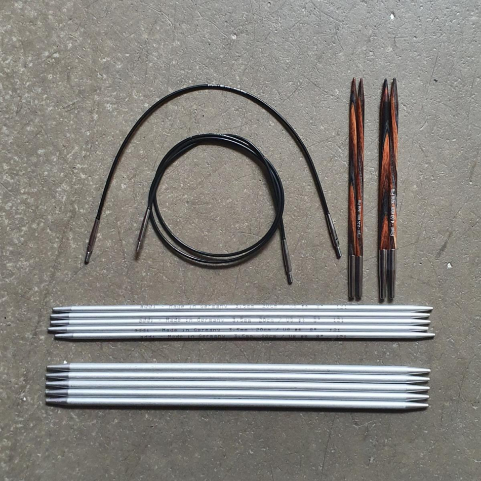 Rundstickor 3,5 och 4,5 med rundstickswire 40 cm och 80 cm.