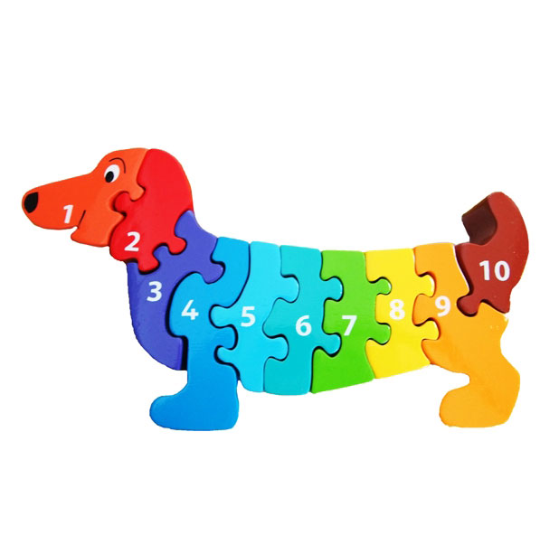 Ett riktigt fint och färgglatt pussel av miljövänligt gummiträ. Lär dig räkna och öva motorik samtidigt med det här fina fair trade pusslet.