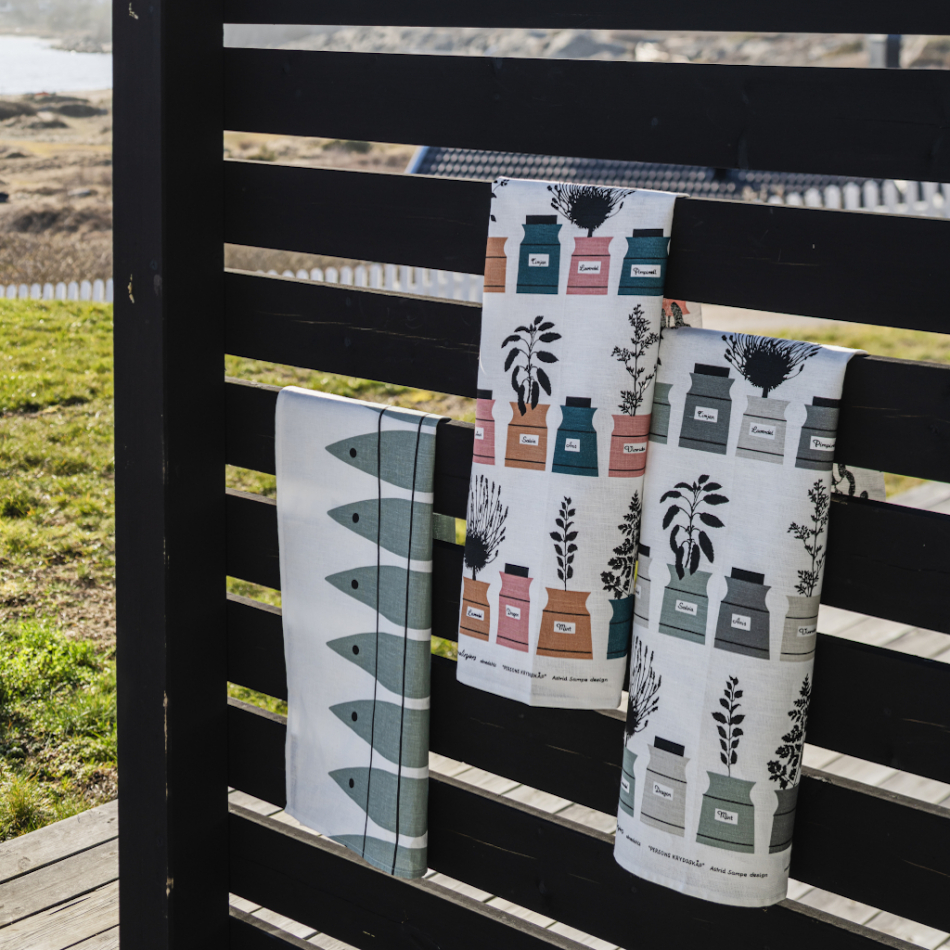 Sill skapades redan 1955. Kökshandduken i halvlinne är en klassiker som fått en ny härlig färg, gröngrå.