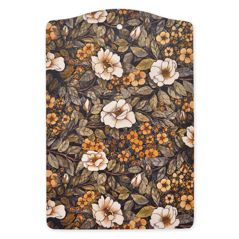 Skärbräda i formpressat trä och handritat mönster Rosatok.