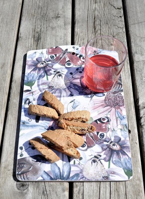Detaljrik sommaräng i dova färgtoner på skärbrädan gör det till en härlig inredningsdetalj i ditt hem.