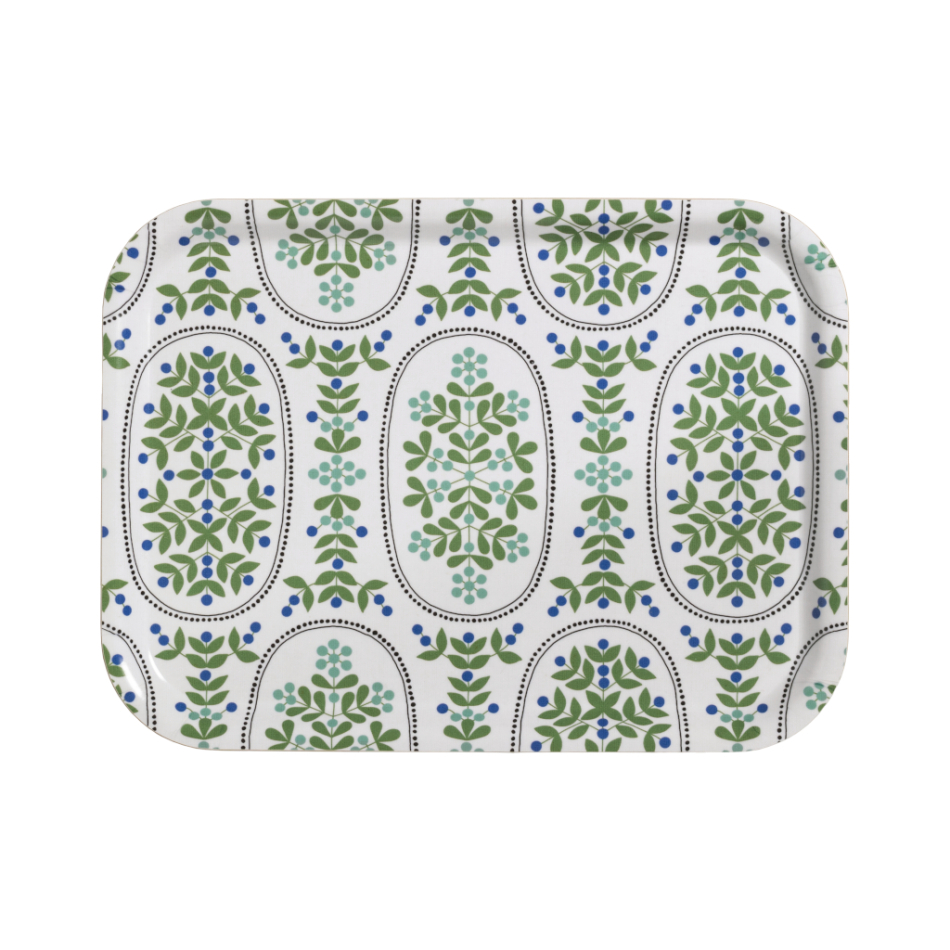 Skogsmedaljong, bricka, blågrön, 27x20cm