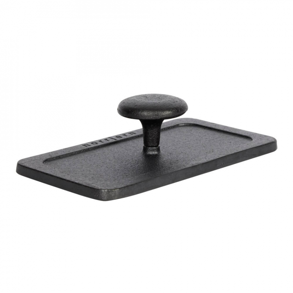 Genom att pressa köttet mot grillgallret skapar du snygga grillmärken och håller köttet i form. Den robusta gjutjärnskonstruktionen klarar höga temperaturer, vilket gör att den kan användas i ugnen eller på grillen med locket på.