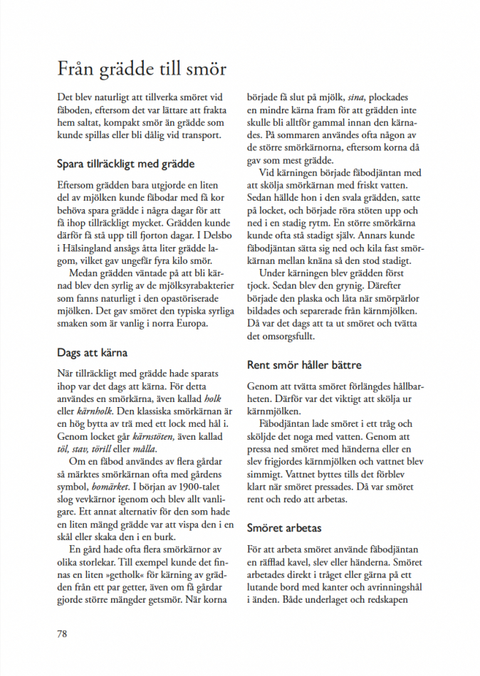 När sommaren nalkades flyttade boskapen hit med fäbodjäntan för att beta bland grånande stugor och blånande berg. Hårt slit förädlade mjölken till gyllene smör, starkluktande ostar och smakrikt messmör.