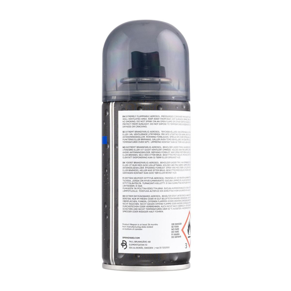 Spraya på och torka av, helt enkelt. Skovax i sprayform, en skonsam formulering baserat på bivax och naturliga oljor som vårdar och mjukgör läderprodukter. Ger även ett lätt smuts- och vattenavvisande skydd. Fungerar utmärkt på alla typer läderprodukter, såsom skor, väskor, skärp, m.m. Supersnabb och enkel applicering Vårdar och mjukgör Lätt vatten- och smutsavvisande Innehåller naturliga oljor och bivax Tillverkad i Sverige