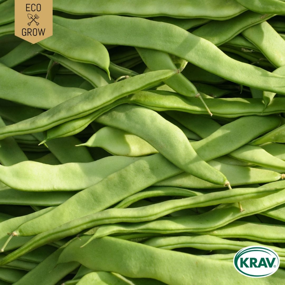 Direktsådd: Så bönorna ca 3 cm djupt på växtplatsen i uppvärmd jord (minst 15 °C). I kall jord ruttnar bönorna istället för att gro. Vattna jorden före sådd och håll fuktigt under grotiden. Vattna och skörda regelbundet för en rikare skörd.