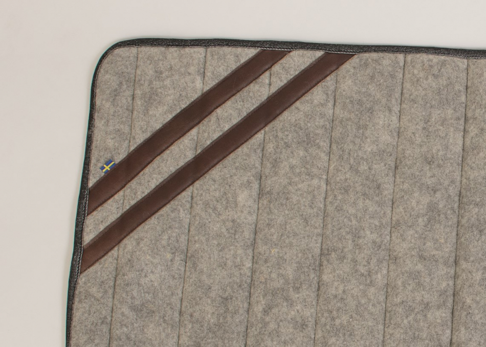Hundfilten är tillverkad i en nålfilt i 100% svensk ull med läderdetaljer av svenskt läder.