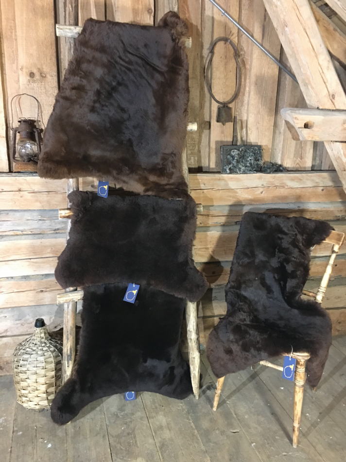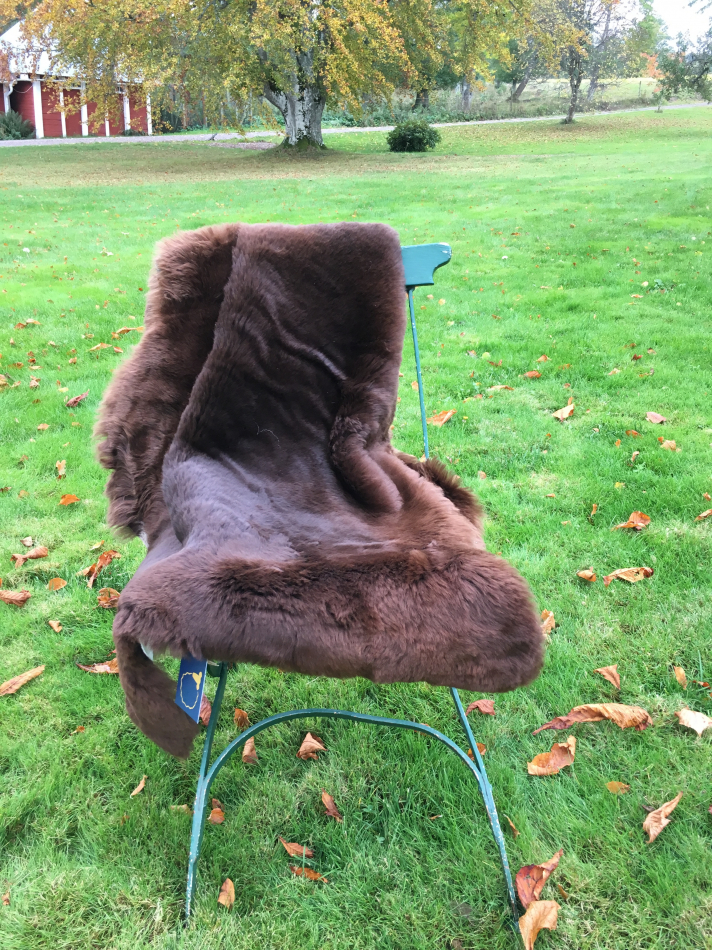 De bruna skinnen är silkeslent, ej tvättbart. Äkta lammskinn är varma och behagliga, fuktreglerande och lugnande.