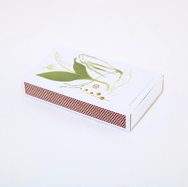 Tändsticksask med botaniska motiv illustrerat av C.A.M. Lindman.