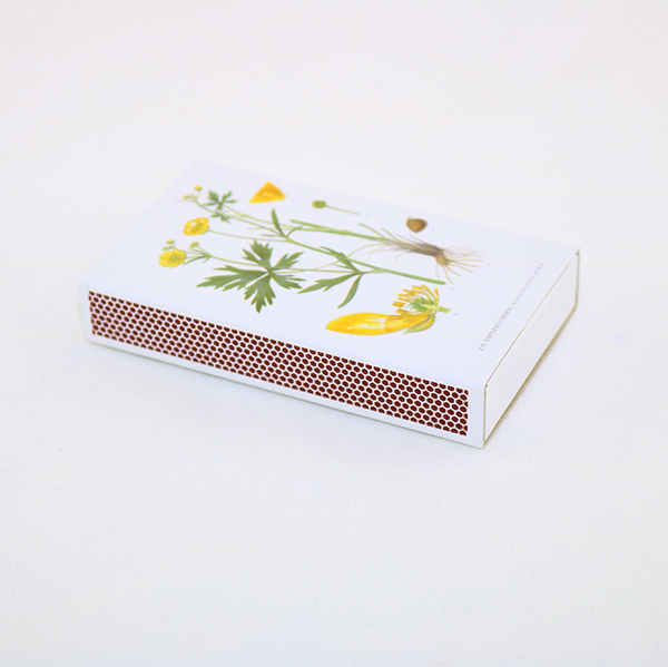 Tändsticksask med botaniska motiv illustrerat av C.A.M. Lindman.