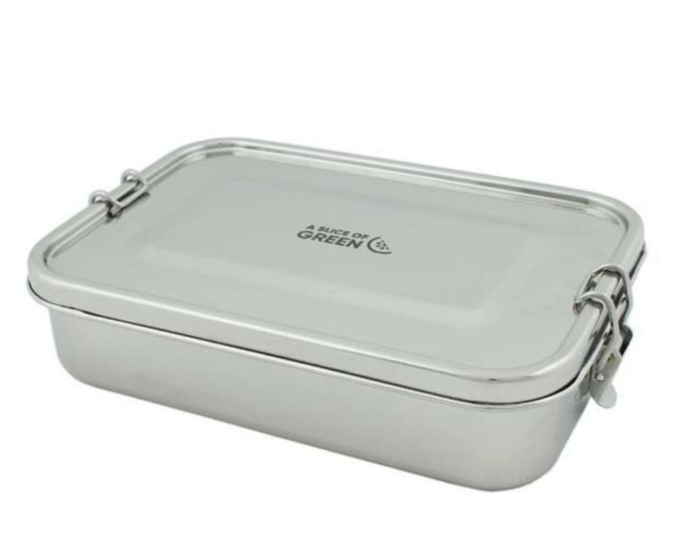 En rejält tilltagen plastfri matlåda av rostfritt stål från fina A slice of Green.