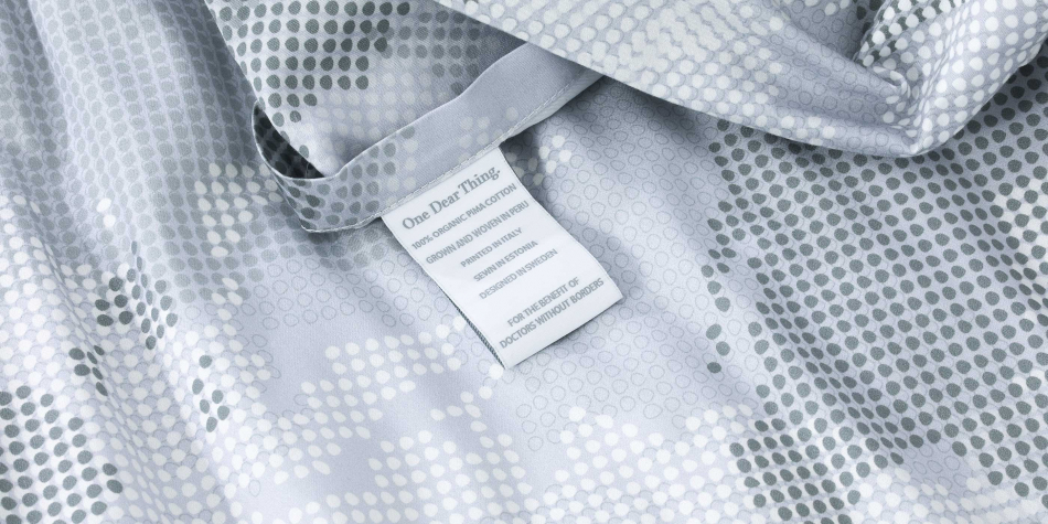 The Worldscape Bed Set, för själsäng. Den perfekta presenten vid en babyshower, som dopgåva – eller till din egen baby! Bomullen är ekologiskt odlad peruansk Pima, en av världens finaste sorter, vilket tillsammans med vävtekniken satin ger en mjuk och sval känsla. Det fina mönstret heter Worldscape och är inspirerat av organisationen Läkare Utan Gränsers arbete. Försäljningen sker till förmån för dem.