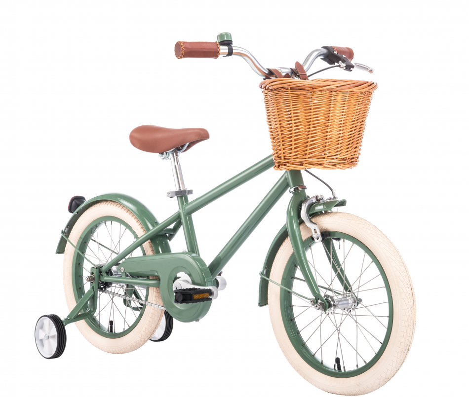 En miniatyr av Stålhästent vuxencyklar har denna godbit stilren grön ram, bruna sydda handtag med matchande sadel, samt fot- och handbroms. Trampa 16” passar barn mellan 4-6 år / 100-125 cm som är redo att med eller utan stödhjul börja cykla på riktigt.