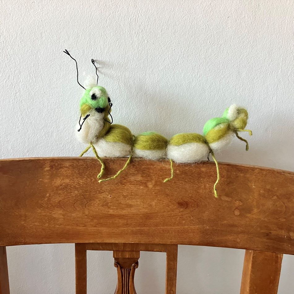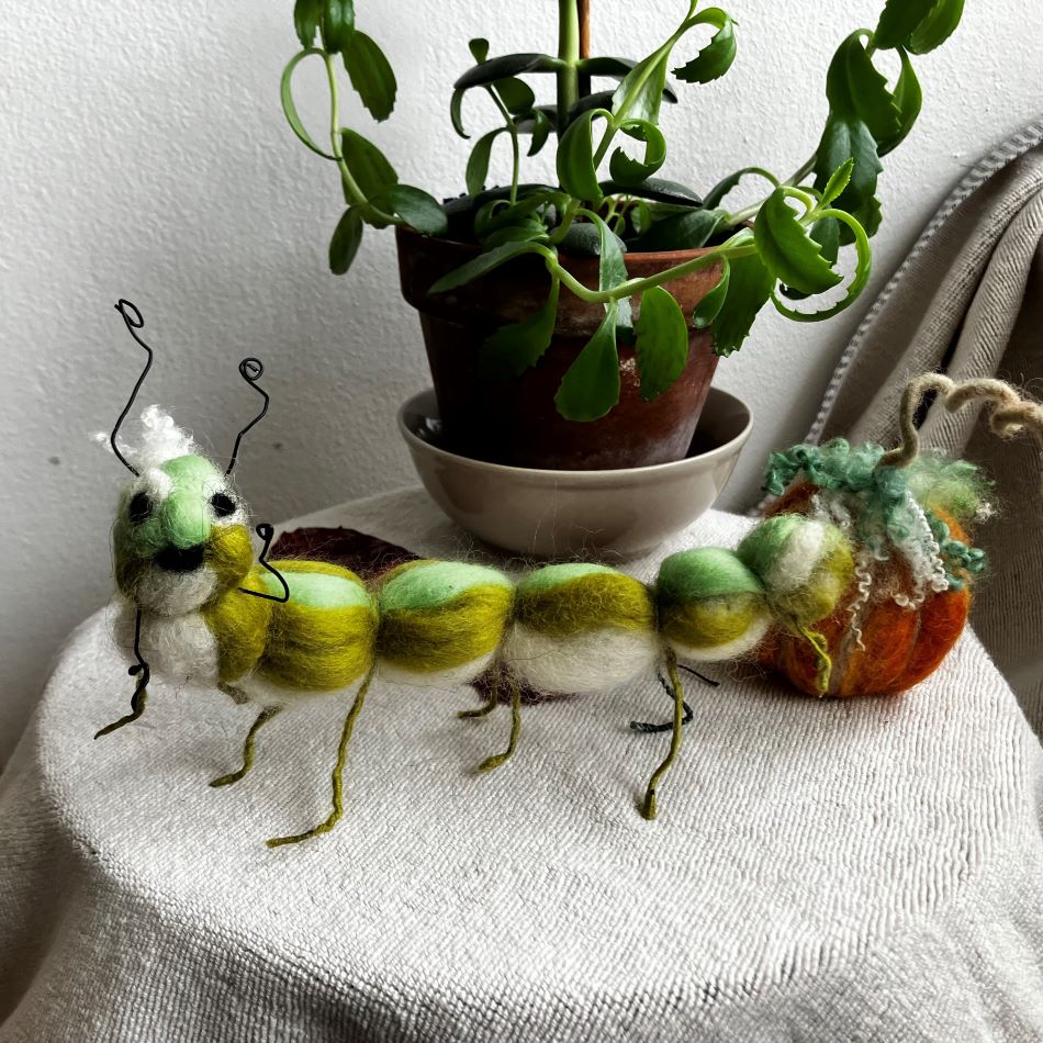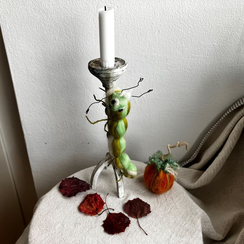 En tusenfoting i ull med stålvajer i kroppen så du kan sätta den i olika positioner. Dekorera på krukor, blompinnar, sätta på väggen, lampor. Ja- (eller använd sidenbandet som kommer med till att ha som bokmärke) vad du vill. Handgjord av @nettansullisar. Ej leksak. Längd ca 20 cm.