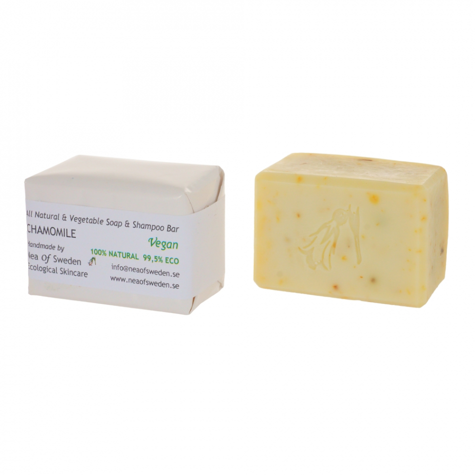 Vegan-vänlig tvål & schampoo kaka med kamomill och mandarinolja.