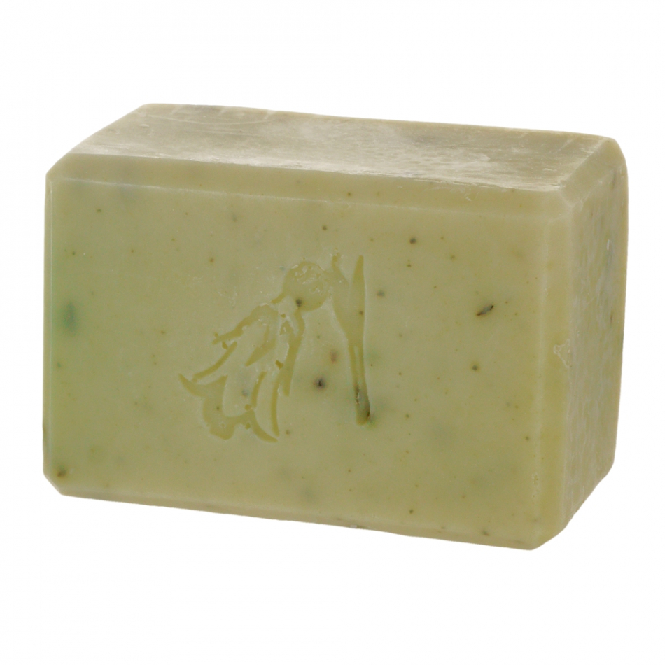 Sodium canolate (rapsolja), sodium olivate (olivolja), sodium cocoate (cocosolja), sodium castorate (ricinolja), sodium shea butterate (sheasmör), simmondsia chinensis (jojobaolja), aqua purificata (renat vatten), green clay (grön naturlera), urtica dioica leaf (nässelbladspulver), spirulina pacifica (spirulina pulver), cedrus atlantica oil (cederträolja), cananga odorata genuine oil (ylang-ylangolja), rosmarinus officinalis leaf oil (rosmarinolja), rosmarinus officinalis leaf extract (rosmarin antioxidant), #linalool.