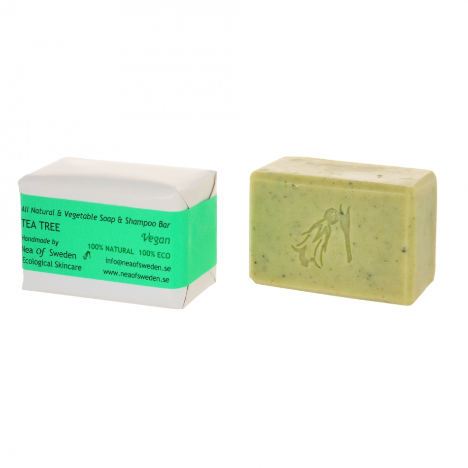 Vegan-vänlig tvål & schampoo kaka med tea tree, pepparmynta och eukalyptusolja.