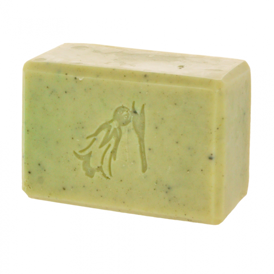 Sodium canolate (rapsolja), sodium olivate (olivolja), sodium cocoate (cocosolja), sodium castorate (ricinolja), sodium shea butterate (sheasmör), simmondsia chinensis (jojobaolja), aqua purificata (renat vatten), green clay (grön naturlera), spirulina pacifica (spirulina pulver), melaleuca alternifolia leaf oil (tea treeolja), mentha piperita oil (pepparmyntsolja), eucalyptus globulus leaf oil (eukalyptusolja), rosmarinus officinalis leaf extract (rosmarin antioxidant).
