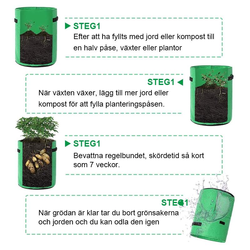 Funktionell: Dessa tygkrukor passar för plantering inomhus och utomhus. De går att sätta vid uteplatser, små trädgårdar, balkonger och växthus mm. De kan användas för att plantera potatis, rädisa, morot, lök, gurka, aubergin, peppar, zucchini och många andra grönsaker.