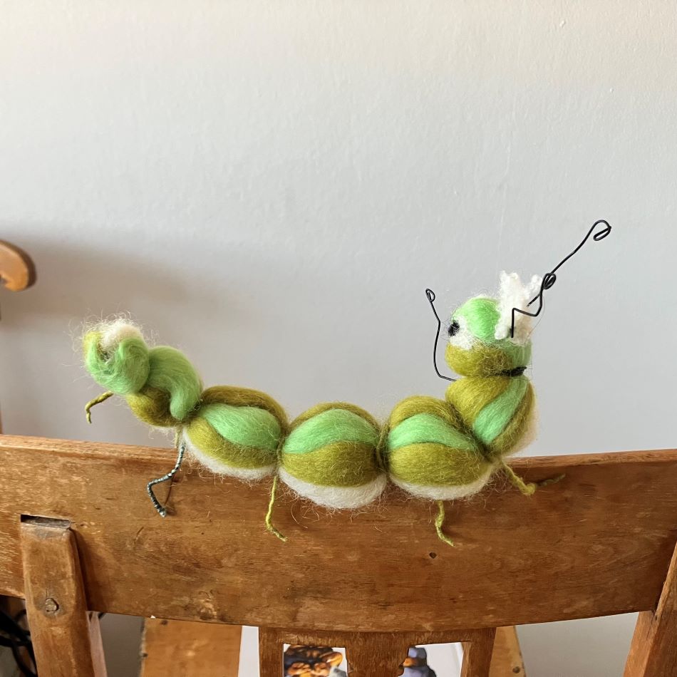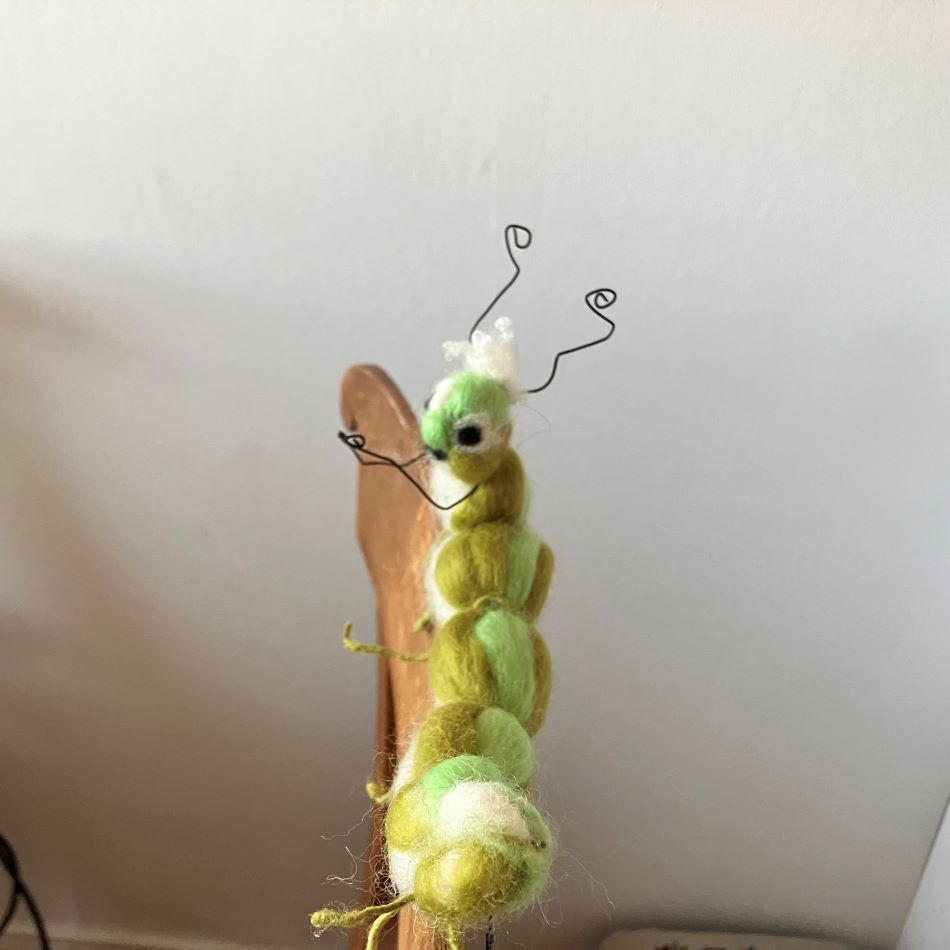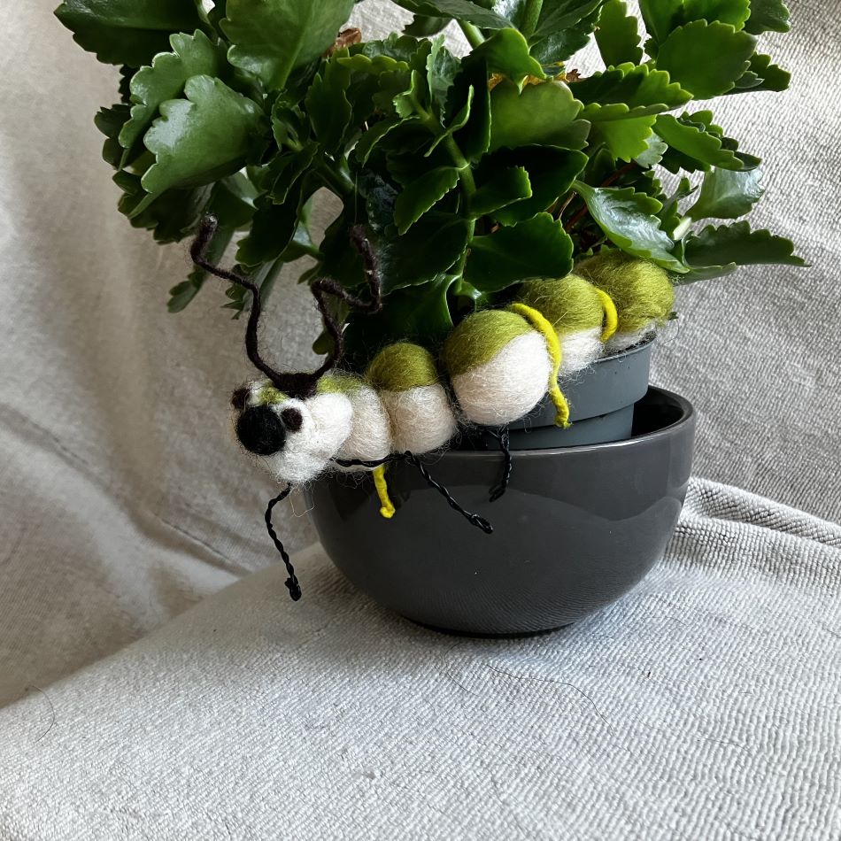 En rolig ulldekoration med stålvajer i kroppen så du kan sätta den i olika positioner. Dekorera på krukor, blompinnar, sätta på väggen, lampor. Ja- (eller använd sidenbandet som kommer med till att ha som bokmärke) vad du vill. Handgjord av @nettansullisar. Ej leksak. Längd ca 10 cm.
