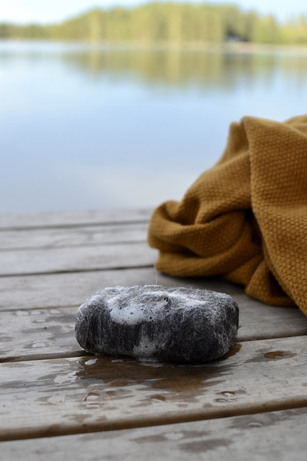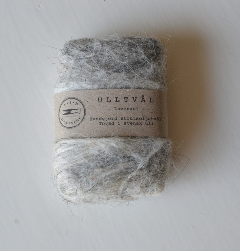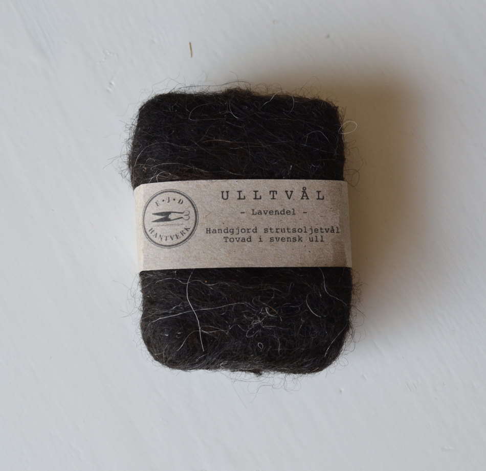 När tvålen är slut återstår en liten ullboll (ullen krymper i takt med att tvålen krymper) Ullen är komposterbar.