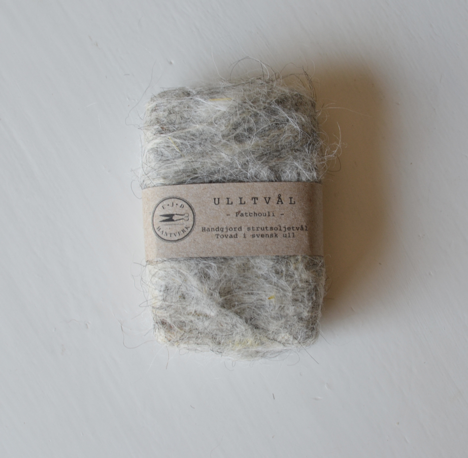 När tvålen är slut återstår en liten ullboll (ullen krymper i takt med att tvålen krymper) Ullen är komposterbar.