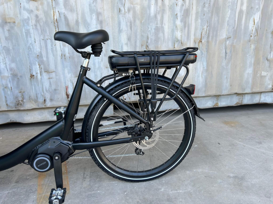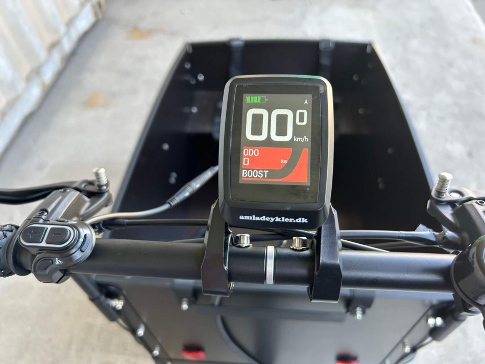 Den är utrustat med hydraliska skivbromsar på alla hjul, vilket gör det lätt att få stopp på din cykel även med full last, den har också automatisk avstängning av motorn så fort man bromsar.