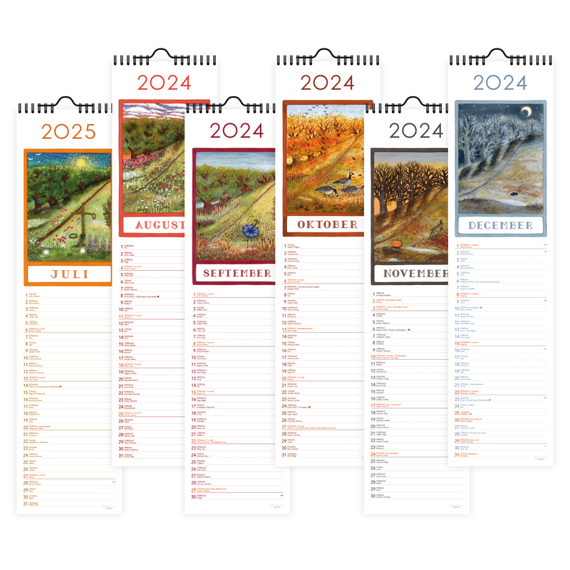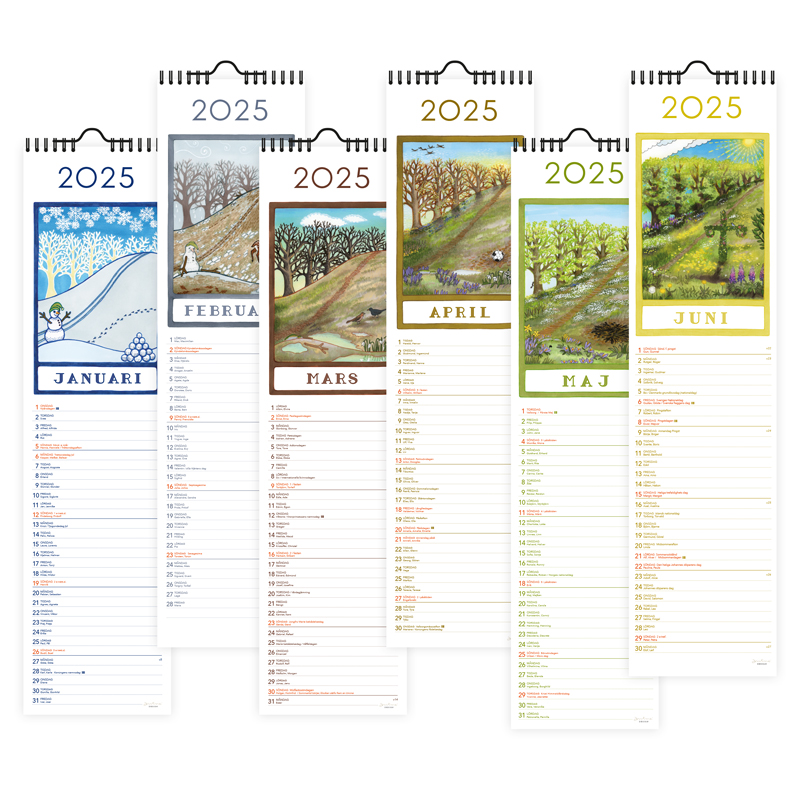 1 sida för varje månad. Med namnsdagar och helgdagar.