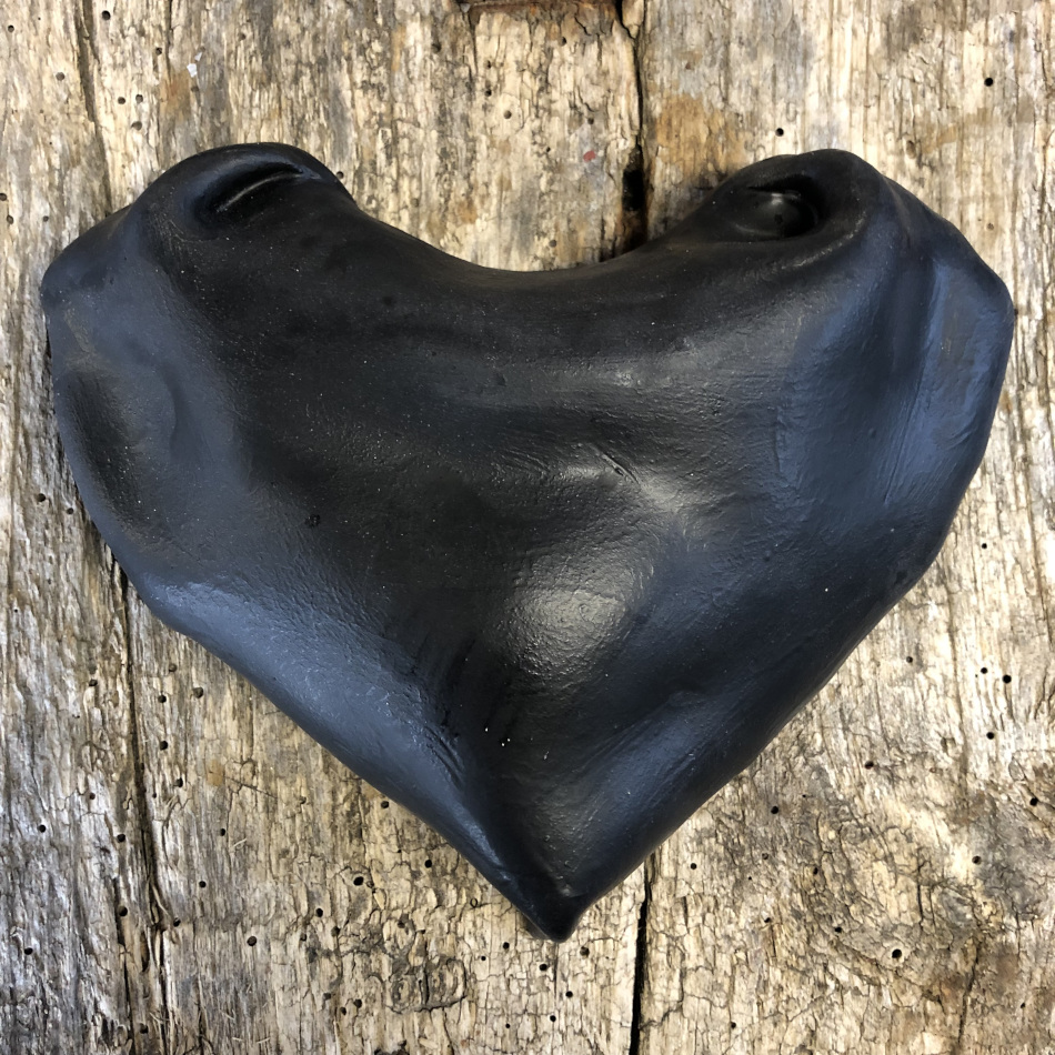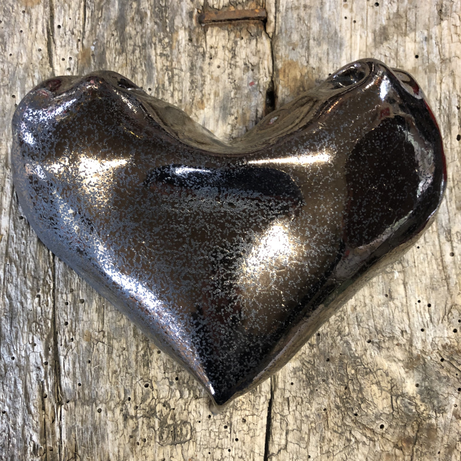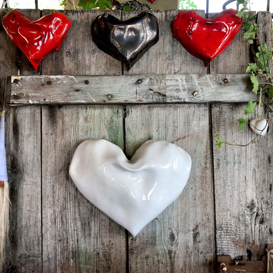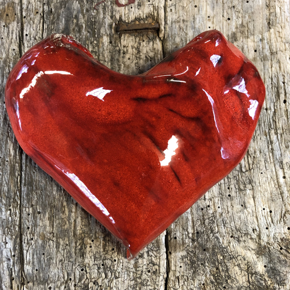 Hjärtat tillverkas för hand i glaserat lergods, i ateljén på Gotland. De kan variera i form och i glasyrens nyans, vilket gör varje hjärta unikt. De bilder som visas är exempel på hur de kan se ut.