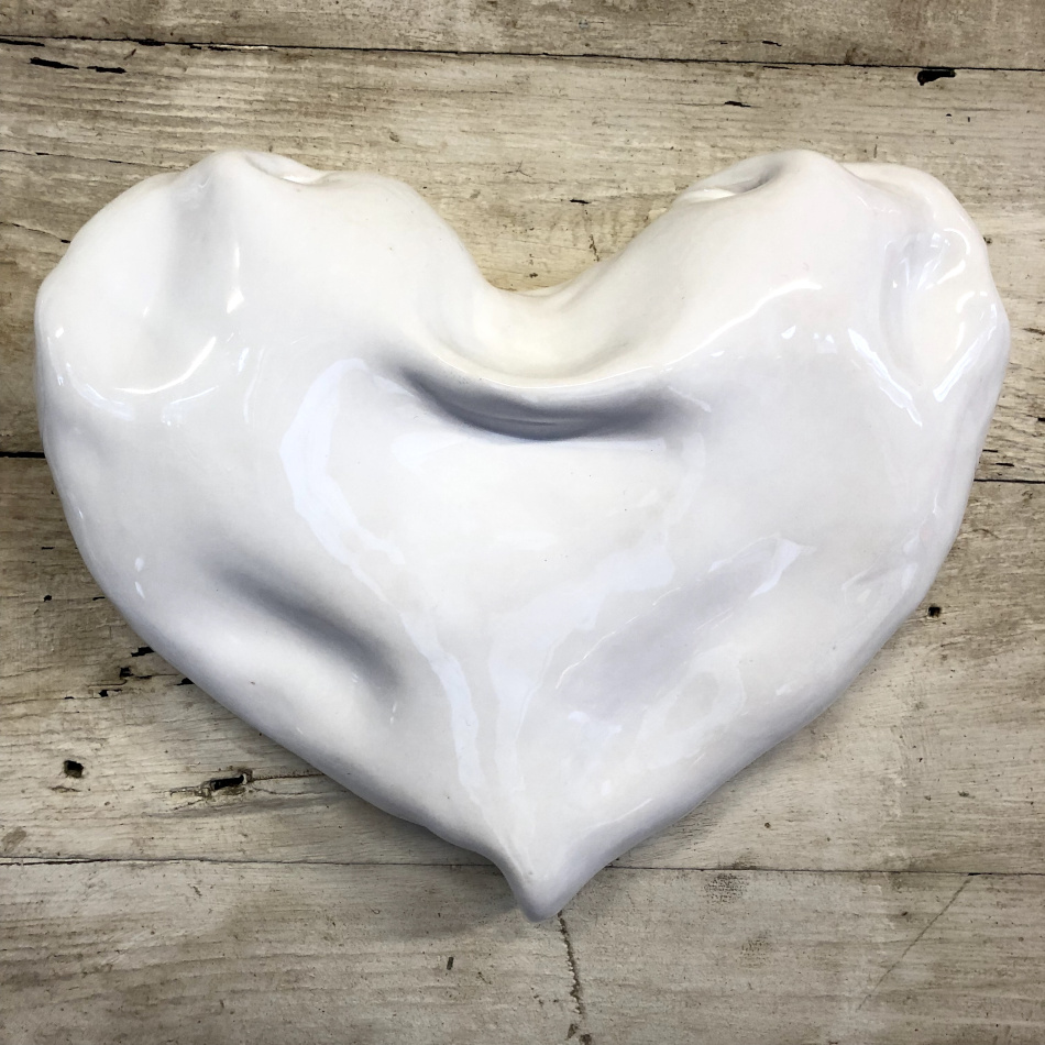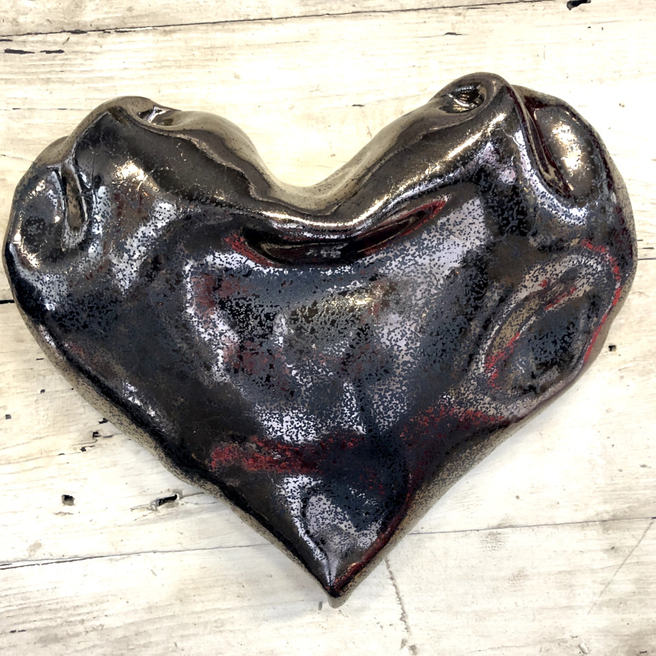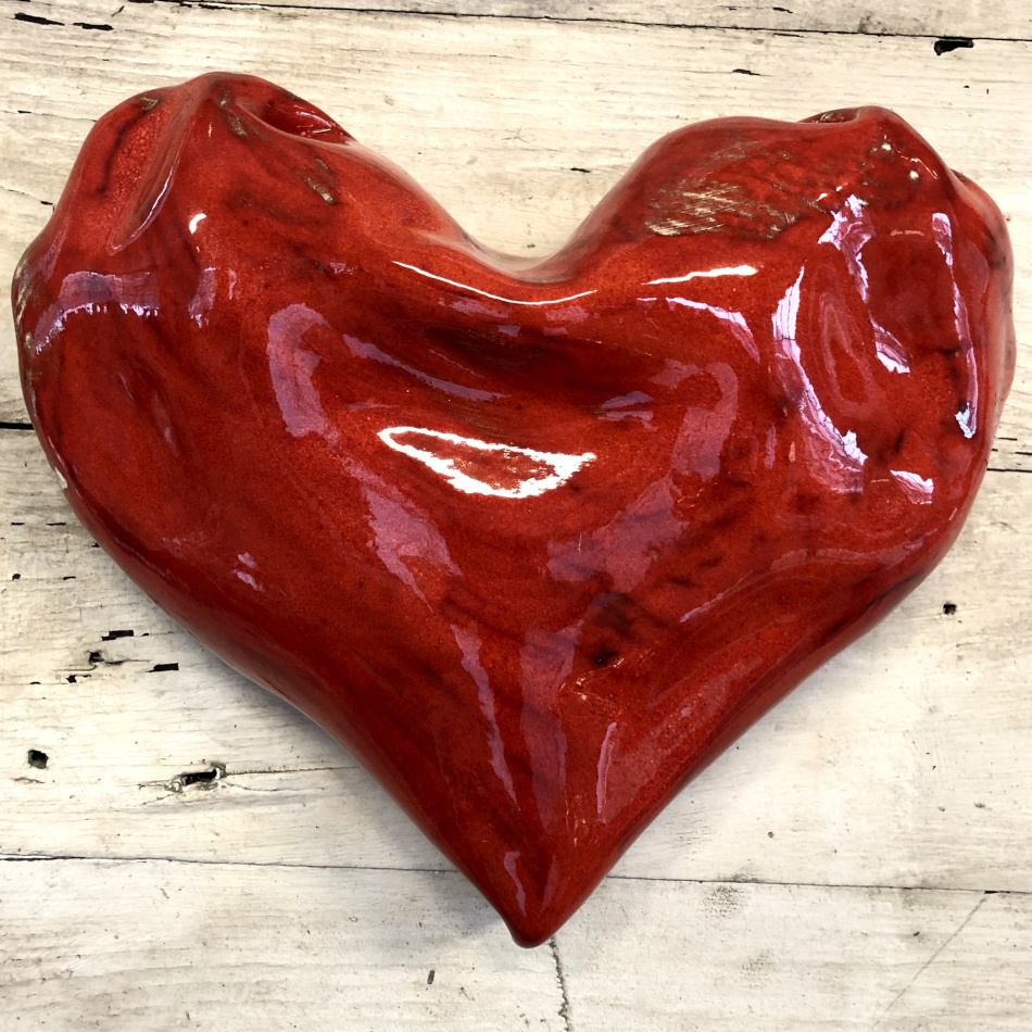 Hjärtat tillverkas för hand i glaserat lergods, i ateljén på Gotland. De kan variera i form och i glasyren, vilket gör varje hjärta unikt. De bilder som visas är exempel på hur de kan se ut.