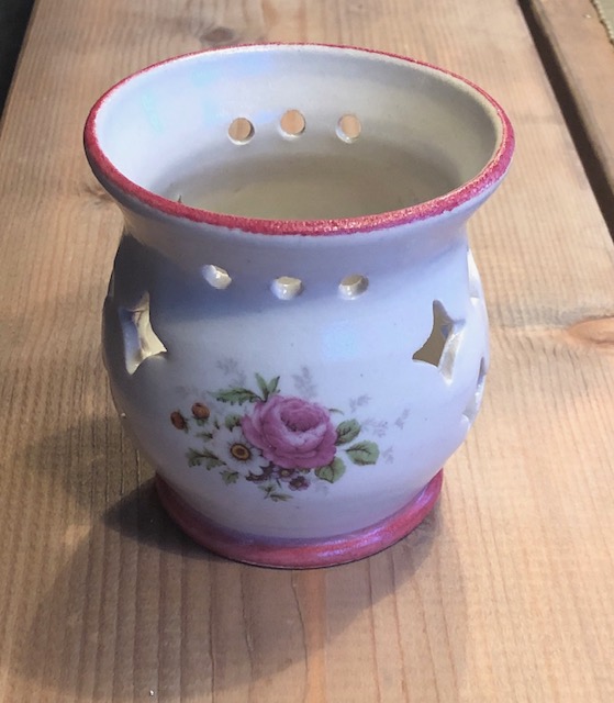 Värmeljuslykta i stengods Sommarblom Röd