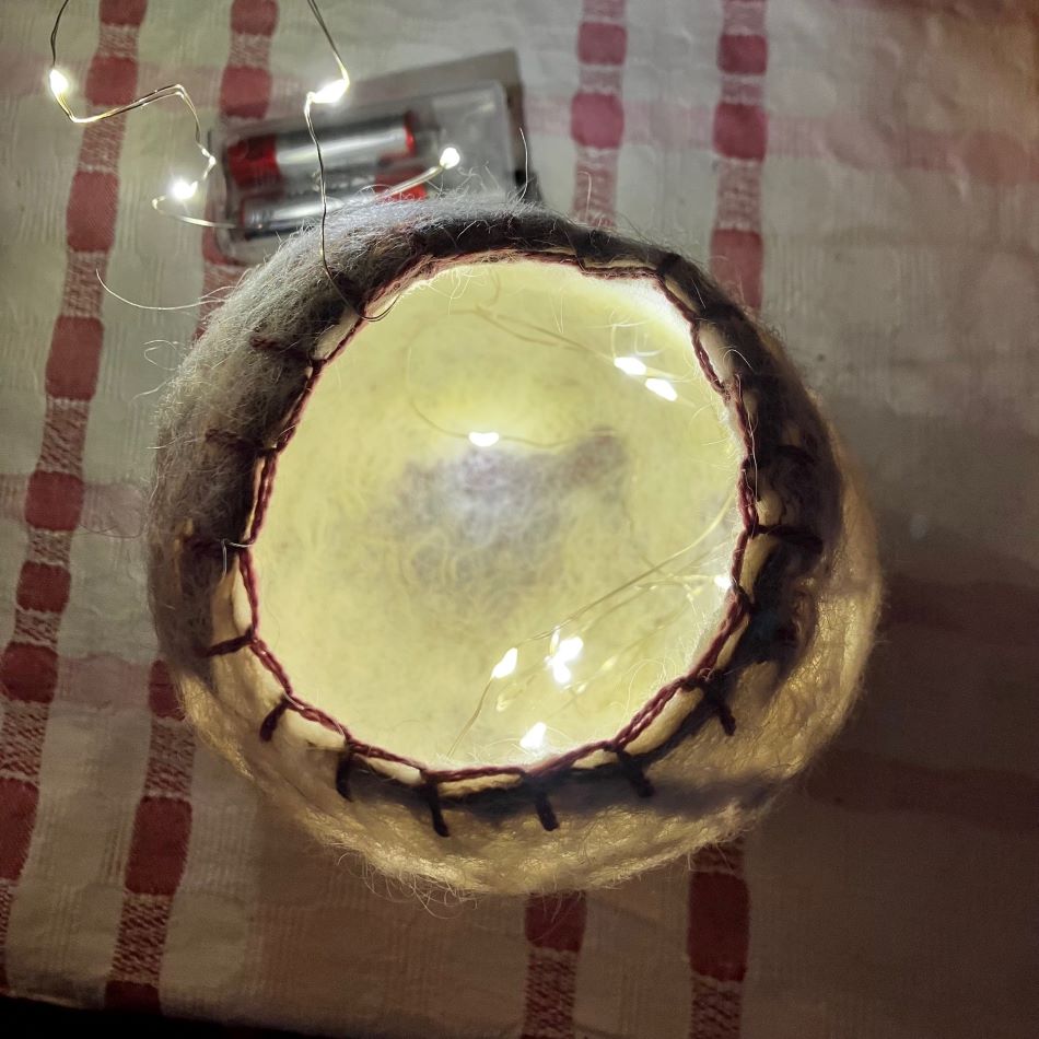Lyktan är cirka 14 cm hög och bredast cirka 16 cm. Den lilla ljuslyktan/vasen väger cirka 30 gram.
