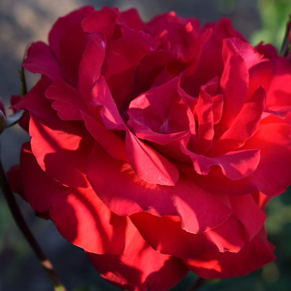 Kätterrosen med de stora mörkröda svagdoftande blommorna!