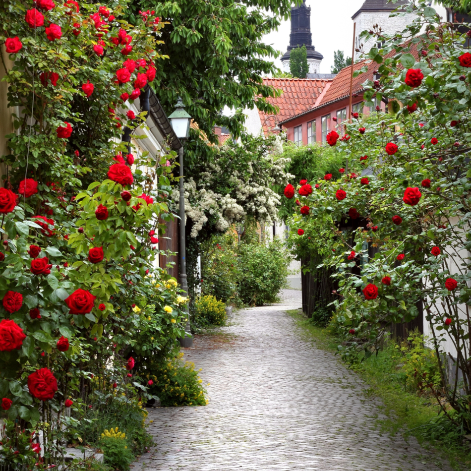Bilderna visar växt som ingår. Notera att alla bilder är på etablerade fullvuxna exemplar. Rosorna levereras som barrot. De bör planteras snarast möjligt efter leverans men kan utan problem förvaras några dagar om de placeras på en kylig plats och rötterna hålls lite fuktiga.
