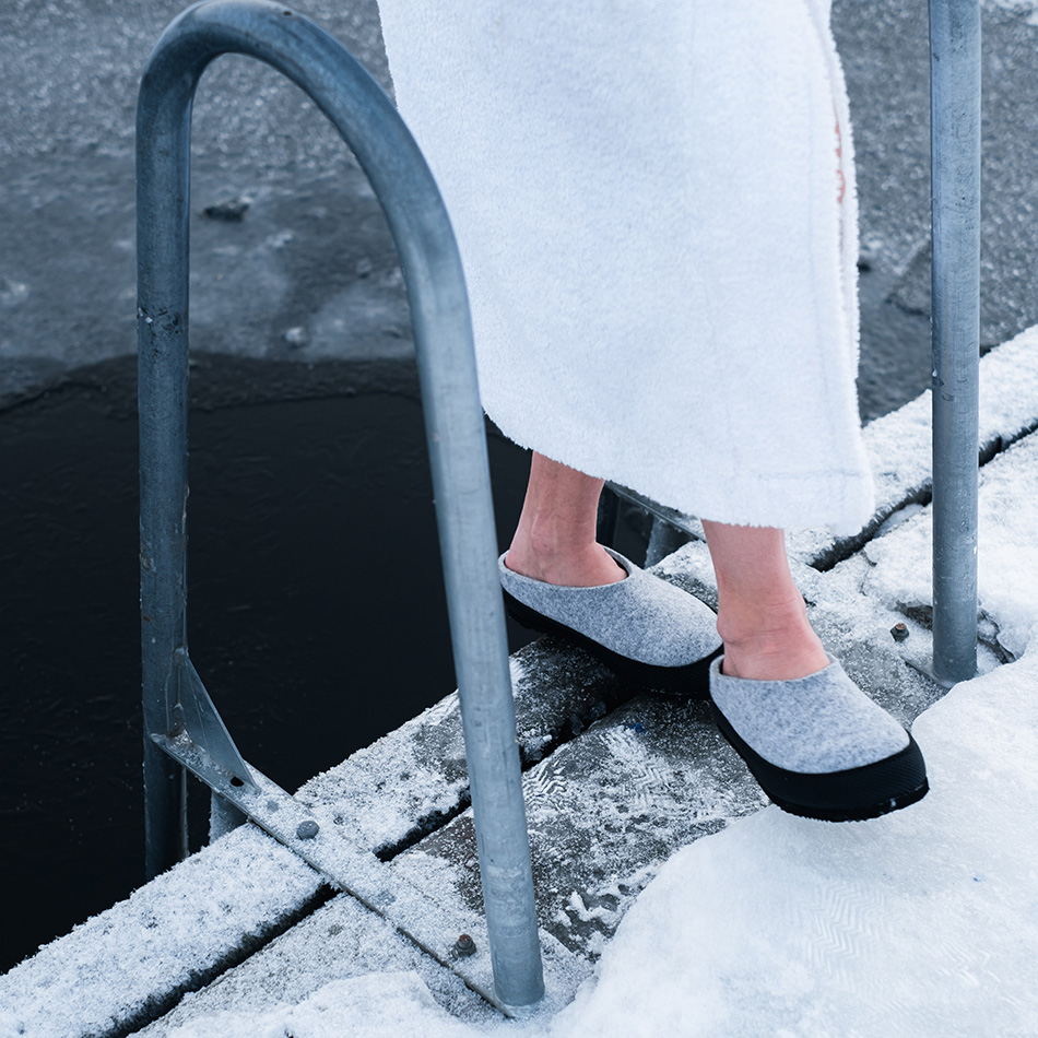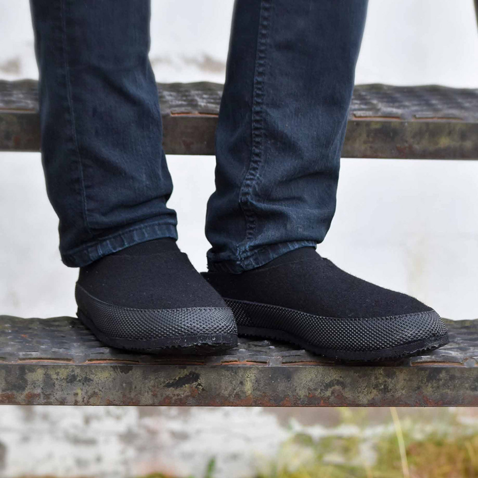 Här hittar du en toffel som kan användas året om, såväl inne som ute. Veman, som är toffelns namn, kan användas både med strumpa och utan. Den lösa innersulan gör att du kan lägga i en extra sula under den formade om den känns lite stor, kanske när du inte bär strumpor. En härlig hopp-i toffel helt enkelt. När sommarkvällarna känns kalla och hösten gör sig påmind eller varför inte packa ner de i ryggsäcken och ta på vid nästa vila. Många användningsområden finns. Alla ni som gillar att bada när det är kallt, superskönt att då ha ett par Veman att hoppa i när ni kommer upp. Tofflorna sys av samma ullfilt som våra Luddor och har även fått en Vibram sula.