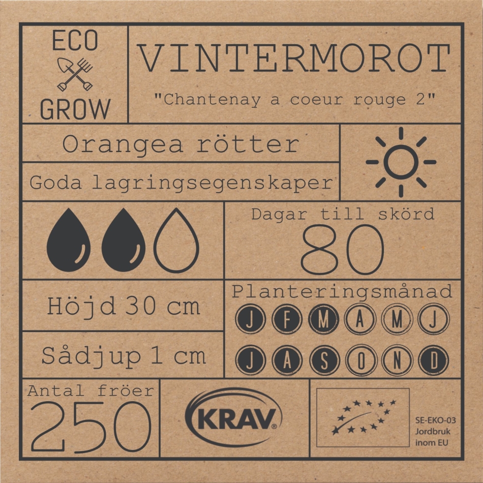 Direktsådd: Så fröna 1 cm djupt på växtplatsen när jorden reder sig (gror vid 7 °C i jordtemperatur). Sås och skördas under hela sommaren. Kan även sås på på hösten för tidig skörd året därpå. Det är viktigt att jorden är djup så att rötterna inte grenar sig. Gallras efterhand för att undvika angrepp från morotsflugan. Rötter för lagring skördas så sent som möjligt. Vid lagring, förvara i lätt fuktig sand eller torv i ett svalt utrymme. Lämpar sig även för kallsådd på vintern.