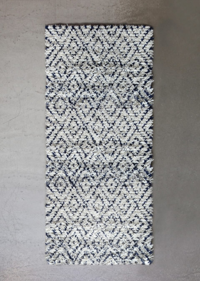 Ryamattan Gåsöga i klassiska vit och mörkblå färgställning.